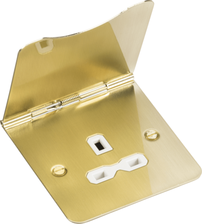 Knightsbridge FPR7UBBW 13A 1G Unswitched Floor Socket - Brushed Brass White Insert