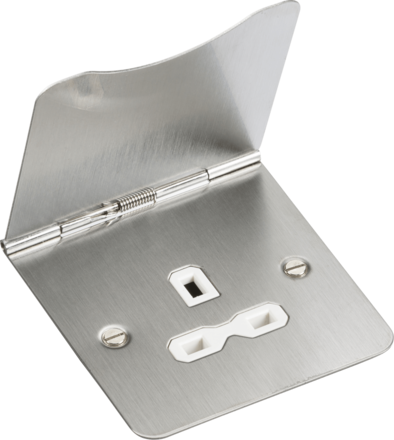 Knightsbridge FPR7UBCW 13A 1G Unswitched Floor Socket - Brushed Chrome White Insert