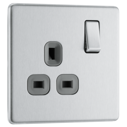 BG Flatplate FBS21G Screwless 13A 1G Single Socket - Brushed Steel
