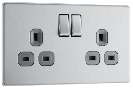 BG Flatplate FBS22G Screwless 13A 2G Twin Socket - Brushed Steel