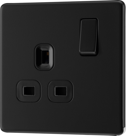 BG Flatplate FFB21B Screwless 13A 1G Single Socket - Matt Black