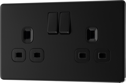 BG Flatplate FFB22B Screwless 13A 2G Twin Socket - Matt Black