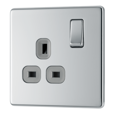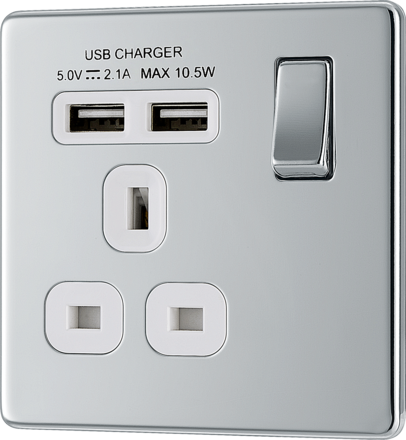 BG Flatplate FPC21U2W Screwless 1G 2USB 2.1A Switched Socket - Polished Chrome
