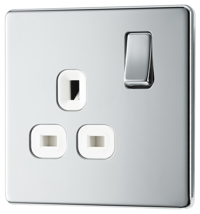 BG Flatplate FPC21W Screwless 13A 1G Single Socket - Polished Chrome