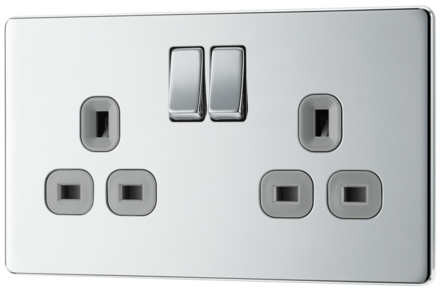 BG Flatplate FPC22G Screwless 13A 2G Twin Socket - Polished Chrome