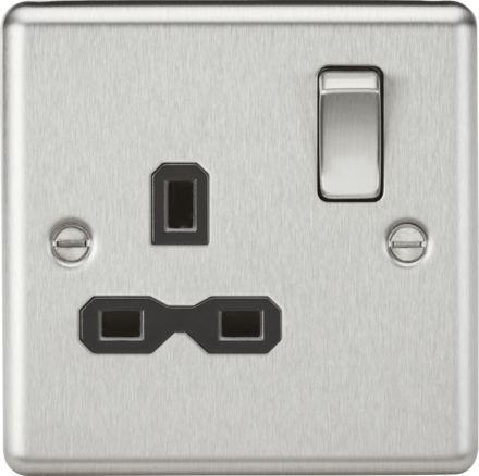 Knightsbridge CL7BC 13A 1G DP Switched Socket Brushed Chrome -Black Insert