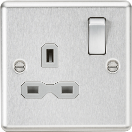 Knightsbridge CL7BCG 13A 1G DP Switched Socket Brushed Chrome -Grey Insert