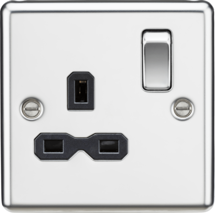 Knightsbridge CL7PC 13A 1G DP Switched Socket Polished Chrome -Black Insert