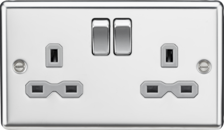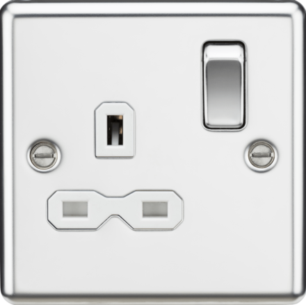 Knightsbridge CL7PCW 13A 1G DP Switched Socket Polished Chrome -White Insert