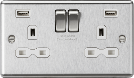 Knightsbridge CL9224BCW 13A 2G Switched Socket Dual USB Charger (A+A) BC -White Insert