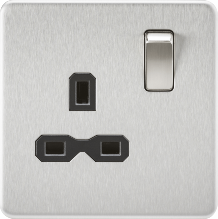 Knightsbridge Screwless SFR7000BC 13A 1G DP Switched Socket - Brushed Chrome - Black Insert