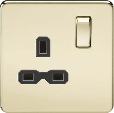 Knightsbridge Screwless SFR7000PB 13A 1G DP Switched Socket - Polished Brass - Black Insert