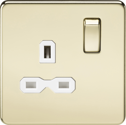 Knightsbridge Screwless SFR7000PBW 13A 1G DP Switched Socket - Polished Brass - White Insert