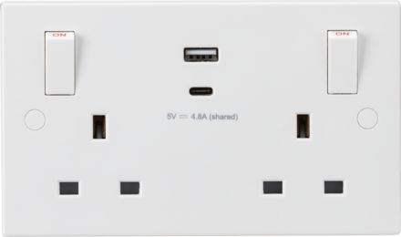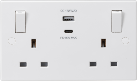 Knightsbridge SN9003 13A 2G Switched Socket with Outboard Rockers & Dual USB QC18W / USB-PD 45W