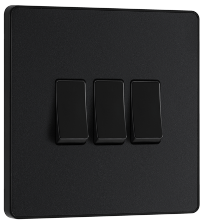 BG Evolve PCDMB15B 10A 3 Pole Fan Isolator Plate Switch - Matt Black