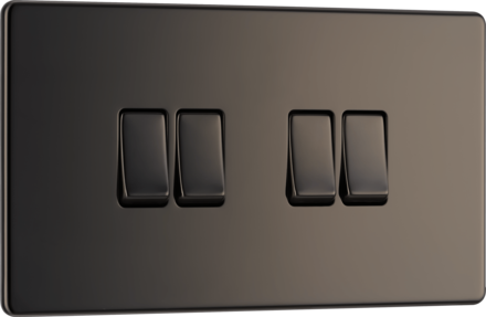 BG Flatplate FBN44 Screwless 20A 4G 2Way Plate Switch - Black Nickel