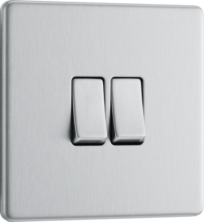 BG Flatplate FBS12 Screwless 20A 1G 2Way Plate Switch - Brushed Steel