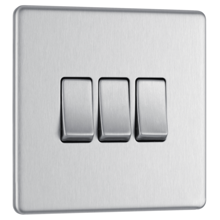 BG Flatplate FBS13 Screwless 20A 1G Intermediate Plate Switch - Brushed Steel