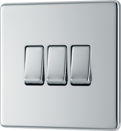 BG Flatplate FPC43 Screwless 20A 3G 2Way Plate Switch - Polished Chrome