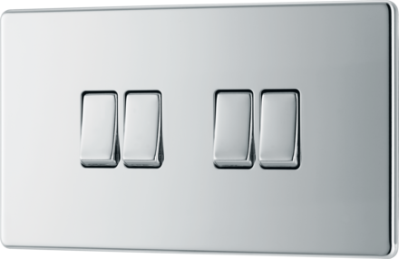BG Flatplate FPC44 Screwless 20A 4G 2Way Plate Switch - Polished Chrome