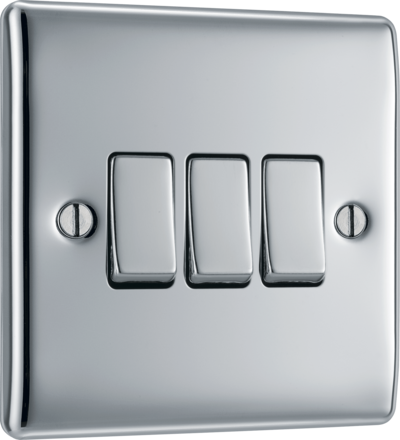 BG Nexus NPC15 10A 3 Pole Fan Isolator Plate Switch - Polished Chrome