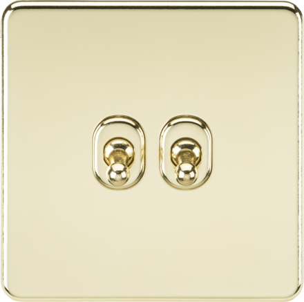 Knightsbridge Screwless SF2TOGPB 10AX 2G 2Way Toggle Switch - Polished Brass
