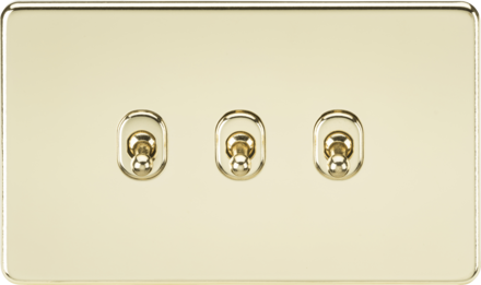 Knightsbridge Screwless SF3TOGPB 10AX 3G 2Way Toggle Switch - Polished Brass