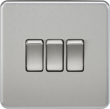 Knightsbridge Screwless SF4000BC 10AX 3G 2Way Switch - Brushed Chrome