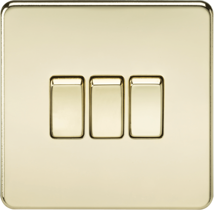 Knightsbridge Screwless SF4000PB 10AX 3G 2Way Switch - Polished Brass