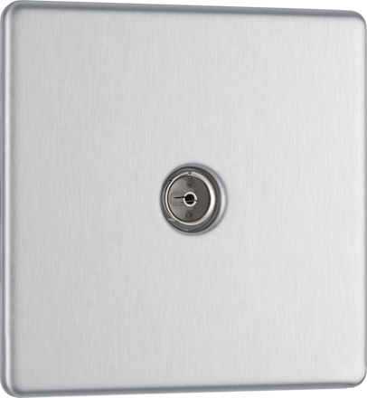 BG Flatplate FBS60 Screwless 1G Co-Axial Socket - Brushed Steel
