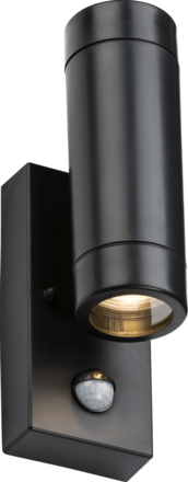 Knightsbridge EAPIR2BK Eamon 230V Polycarbonate Up/Down Wall Light with PIR - GU10 - IP44 - Black